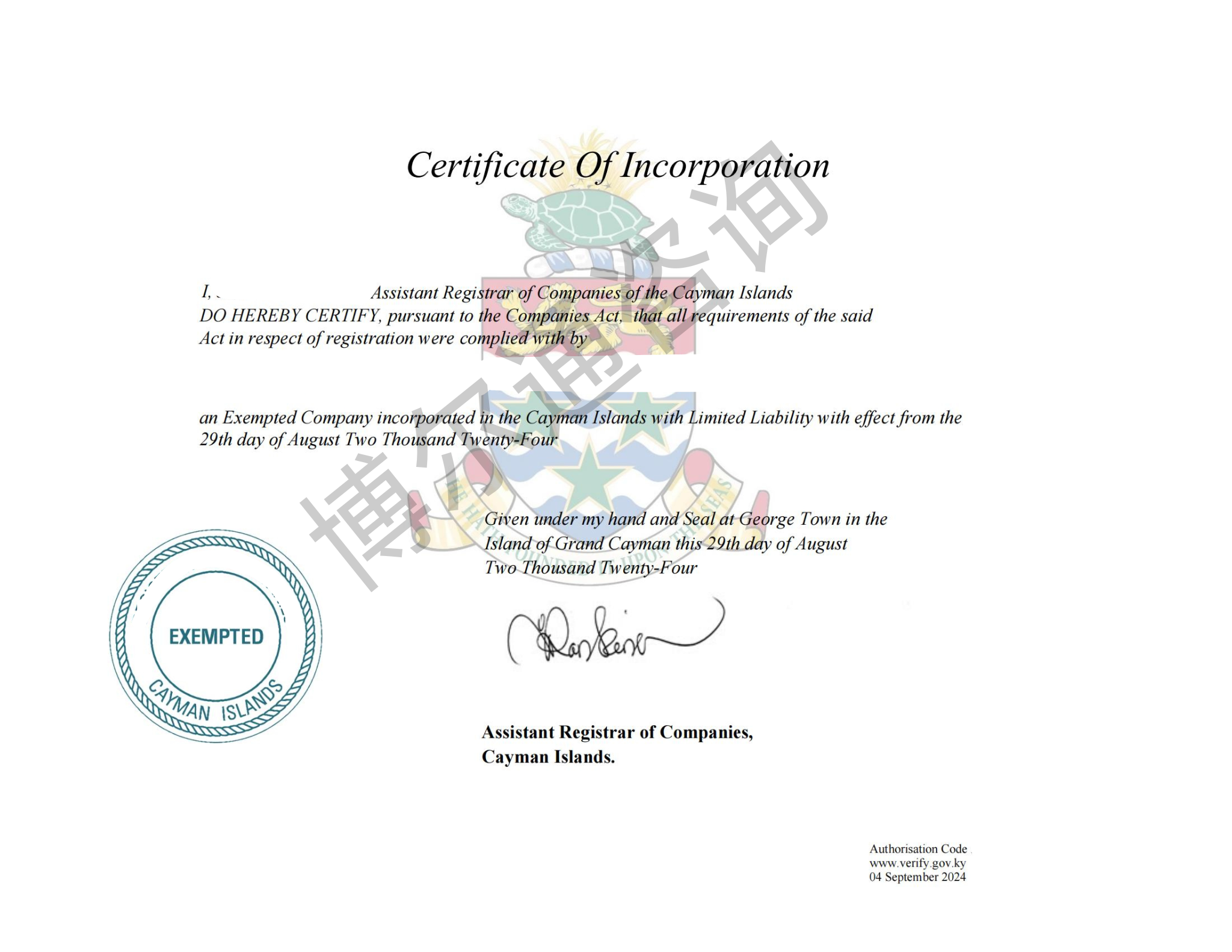 03开曼公司注册后得到的资料