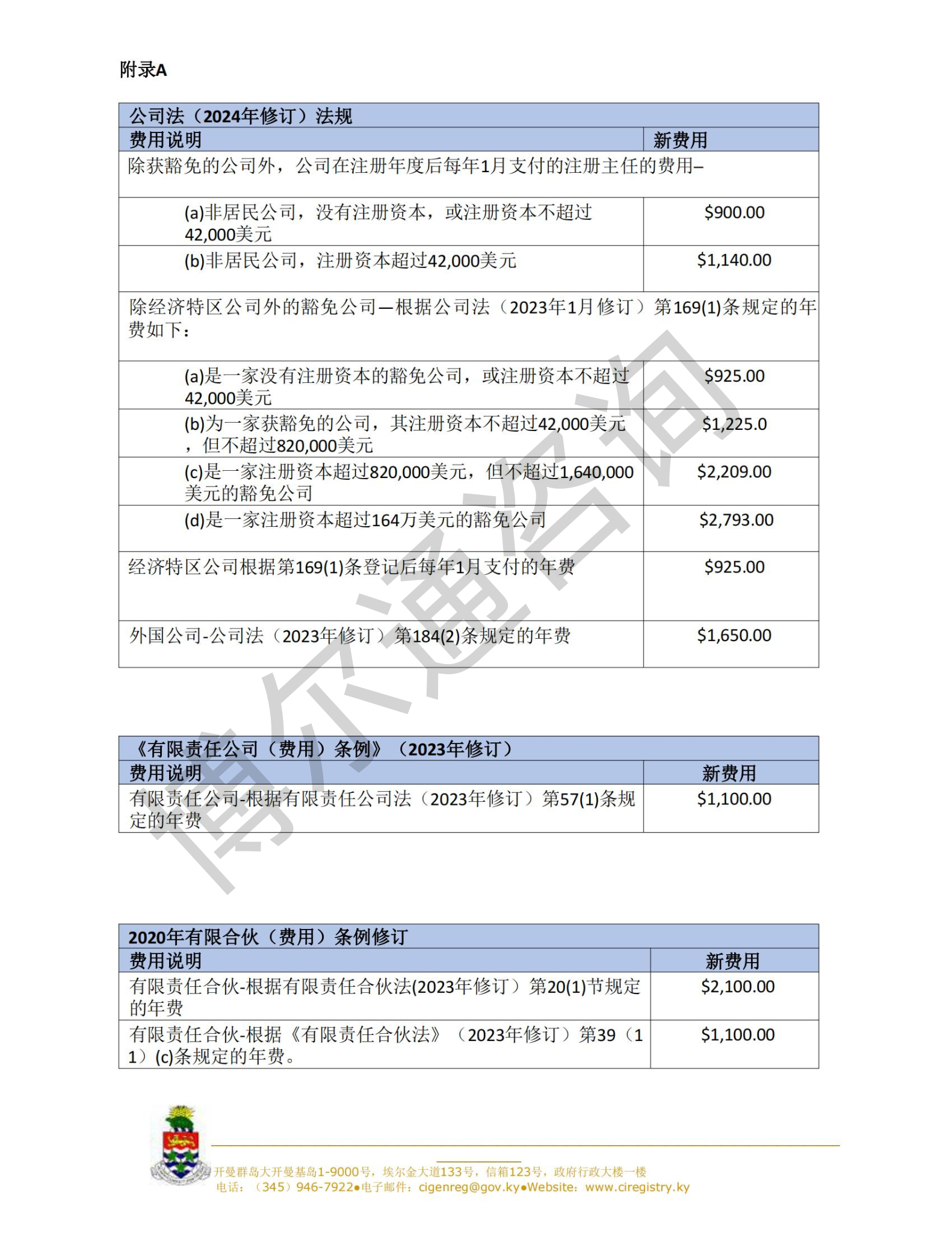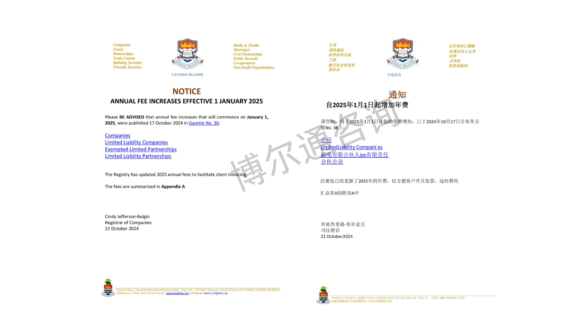 「公司、有限责任公司、豁免有限合伙企业和有限责任合伙企业的年费变更,将于2025年1月1日正式生效。」
