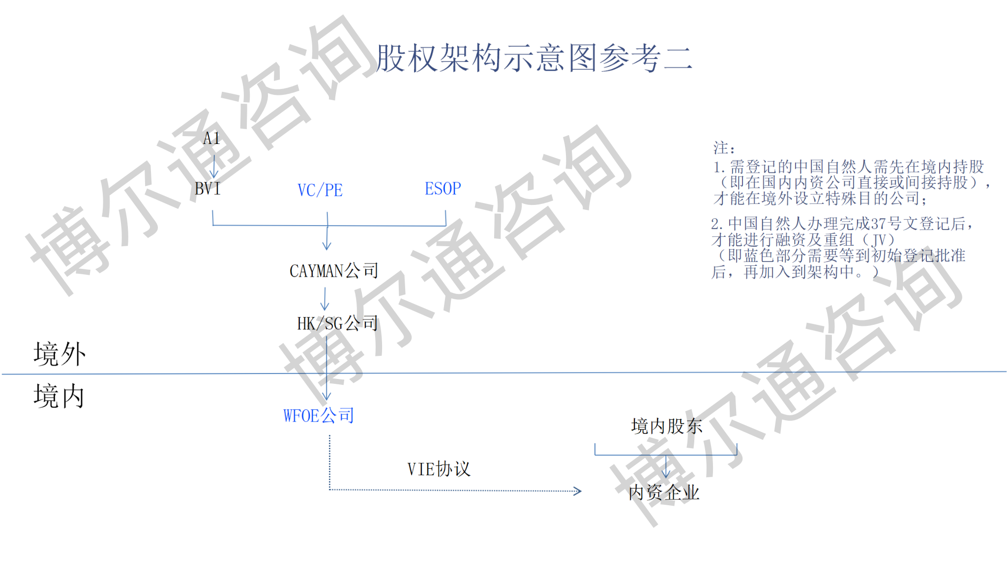 境外架构:BVI→开曼→香港→WFOE