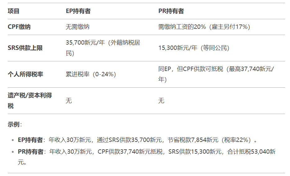 02外籍人士专属优势更高供款上限:外籍纳税居民(如EP持有者)的供款上限是本地居民的2.3倍(35,700 vs. 15,300新元),适合高收入外籍专业人士。